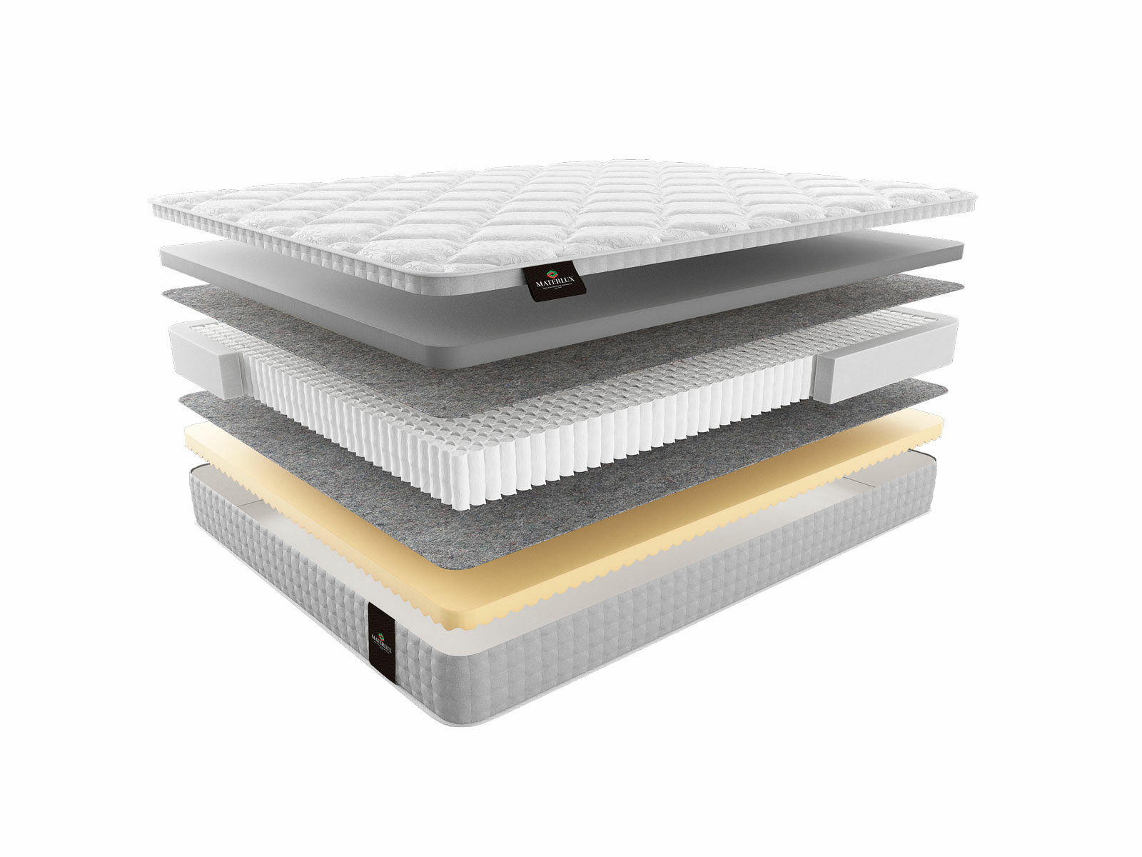 Термофиксированный фетр высокой плотности (500 гр./кв. м; 0,5 см): этот натуральный материал служит в качестве надежной изоляции между пружинами и внешними слоями матраса, обеспечивая дополнительную прочность и комфорт.