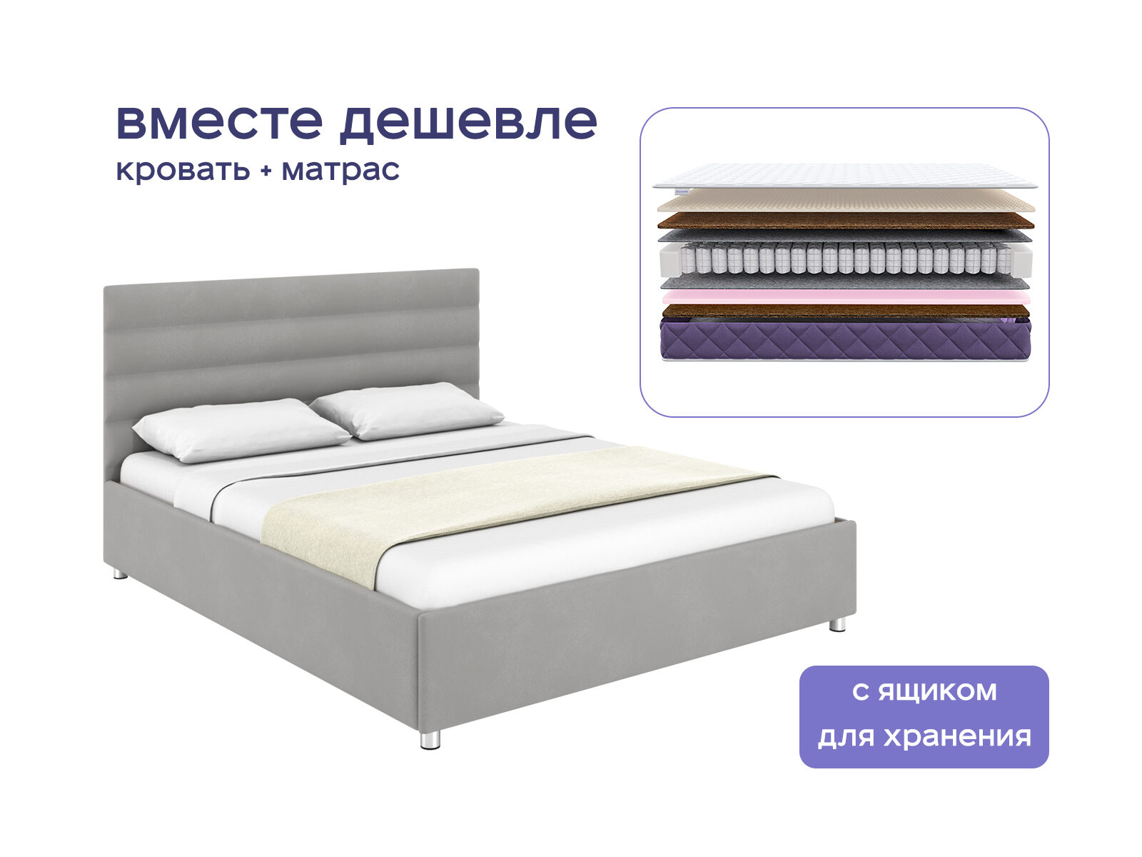 Комплект Левита с подъемным механизмом + Базилик Микс 20 Медиум Массаж — это гармония элегантности и комфорта для вашего отдыха. Стильная кровать украсит любую спальню и матрас, точечно подстраивающийся под тело, дополнен массажными зонами для расслабления мышц — как в спа-салоне. При покупке комплекта вы экономите до 36% от стоимости. Идеально для тех, кто хочет совместить современный дизайн с ортопедическим эффектом, не жертвуя практичностью.