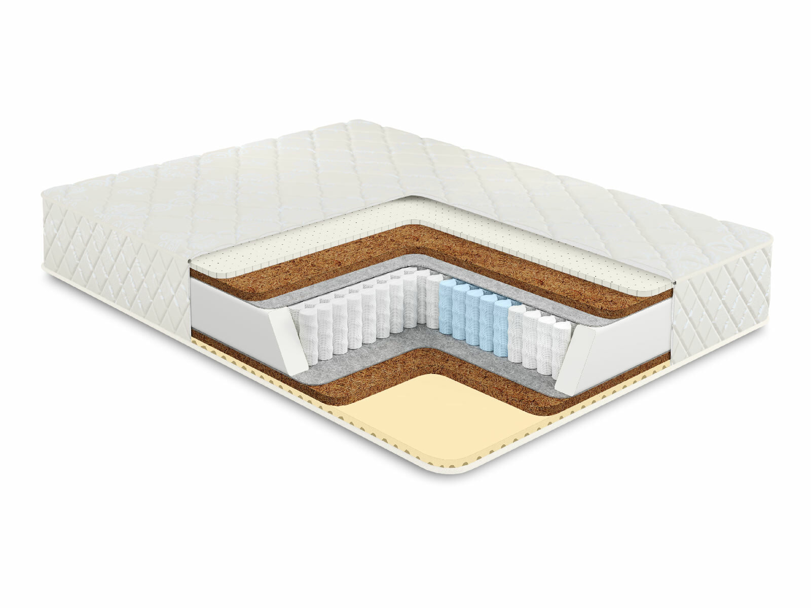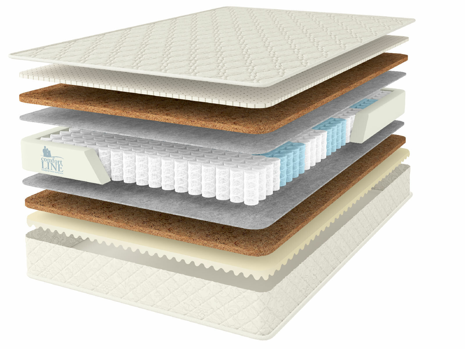 Кокосовое волокно с натуральным латексом придает жесткость, экологически чистый материал, который прекрасно вентилируется.