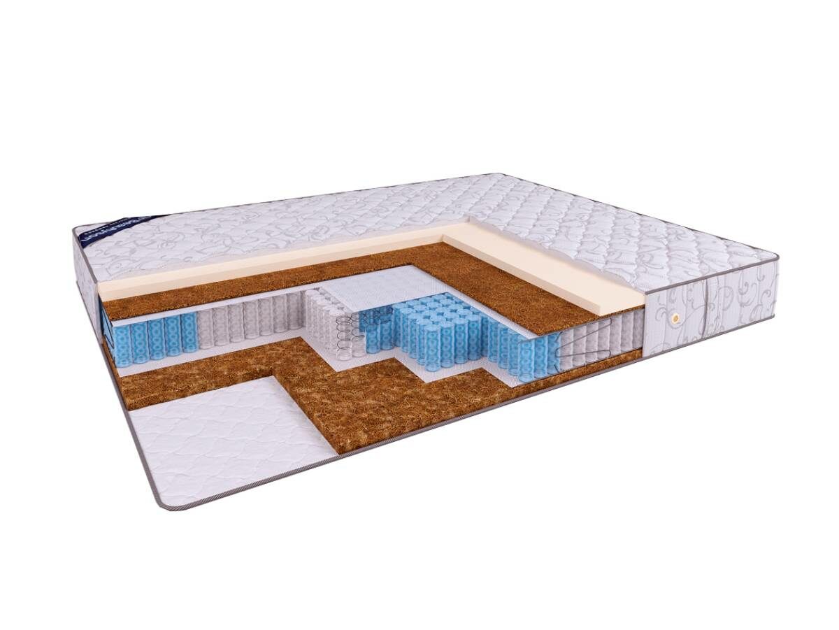 Матрас с разной жёсткостью сторон Hit VarioHard S1200 выполнен на основе пружинного блока "Мультипакет" (1200 пружин на спальное место), искусственного латекса и эко-кокоса (смесь натуральных кокосовых волокон со струттофайбером). Мультизональный пружинный блок обеспечивает оптимальную анатомическую поддержку спящему человеку, 5 различных зон жёсткости пружин соответствуют частям тела человека, обеспечивая тем самым равномерное распределение веса тела и нахождение позвоночника в естественном положении. Искусственный латекс - гипоалергенный аналог натурального наполнителя. Данный материал имеет пористую структуру, сечение ячеек которой идентично сечению ячеек натуральной латексной пены, благодаря чему достигается практически полное соответствие характеристик. При этом немаловажным преимуществом искусственного латекса является его абсолютная гипоаллергенность, т.е. применение данного материала безопасно даже для людей, страдающих от аллергии.