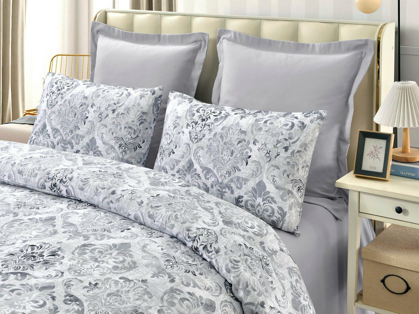 Пошив: пододеяльник на пуговицах, наволочки с клапаном.