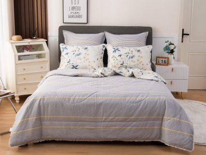 В комплекты комфортеров с одеялом Бернадетт входят наволочки, простыня и легкое всесезонное одеяло. Оцените это современное и очень удобное решение, которое идеально подходит тем, кто не любит возиться с пододеяльниками.