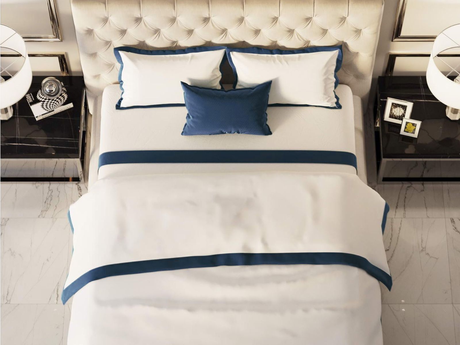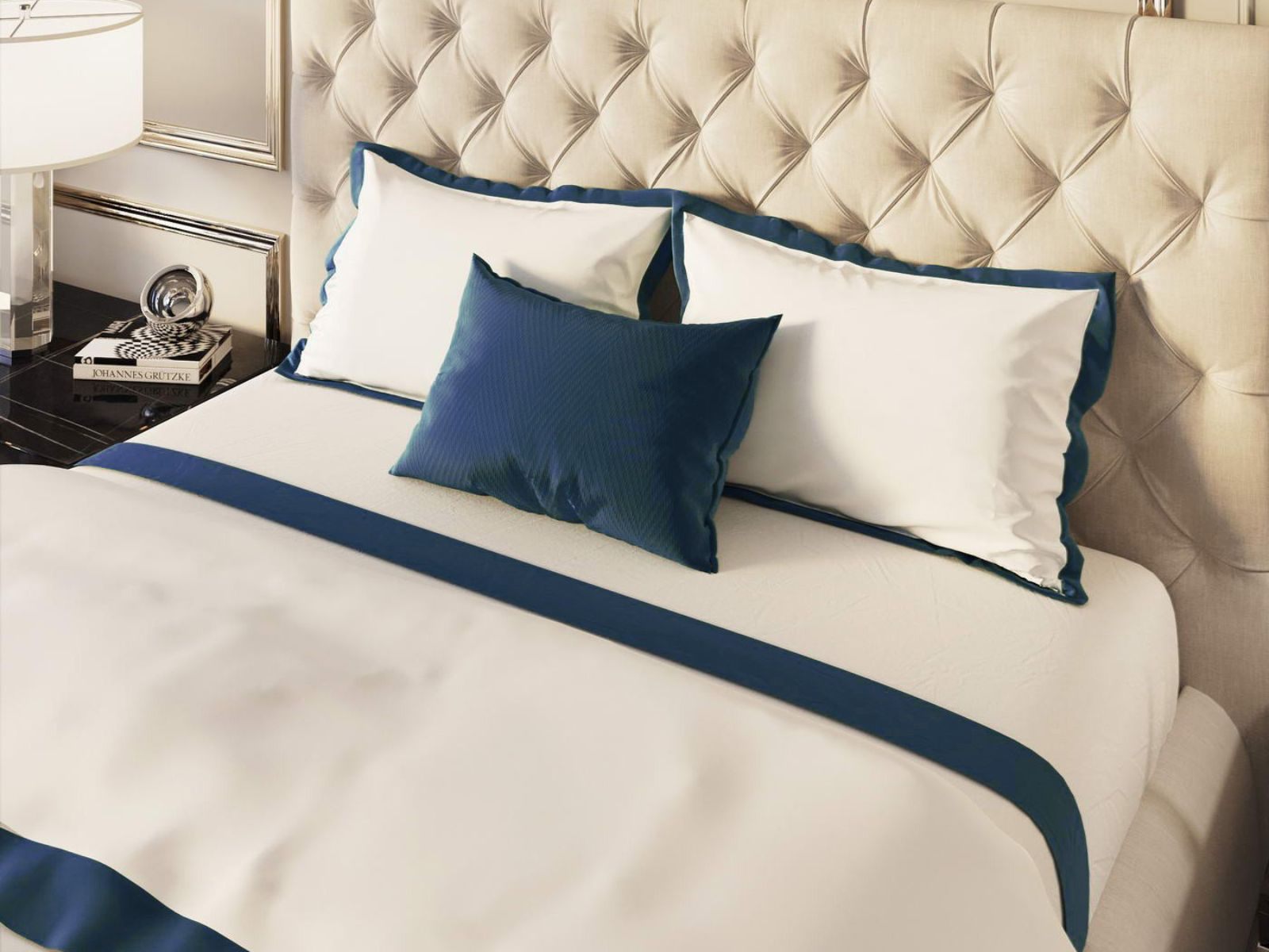 Особенность: Пошив пододеяльника - пуговицы, пошив наволочек - клапан. Изделия декорированы цветными ушками 5 см.