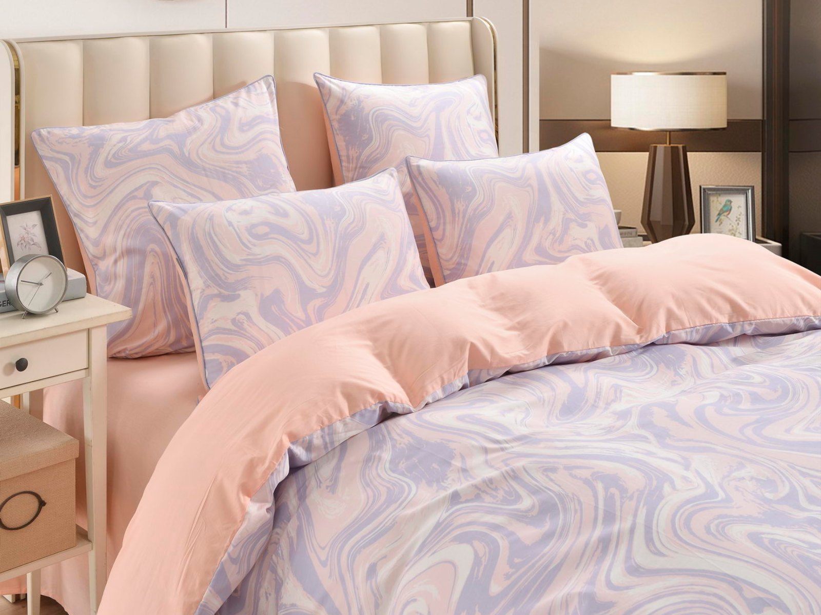 Лорайн (лиловый) КПБ сатин — идеальный выбор для тех, кто одинаково ценит комфорт, эстетику и практичность. В составе — Хлопок 100%, поэтому у постельного белья исключительная износостойкость. Даже после многочисленных стирок оно сохранит первозданный цвет, прочность, мягкость и гладкую фактуру. Благодаря отличной воздухопроницаемости материал обеспечивает прохладу летом, а зимой согревает, плюс дарит приятные тактильные ощущения и здоровый сон. Сатин — еще и удивительно красивая ткань, КПБ из нее украсит интерьер спальни, сделает ее по-настоящему уютным местом для полноценного отдыха. К тому же у дизайнеров этот материал всегда в тренде, поэтому с такой покупкой вы точно не прогадаете.