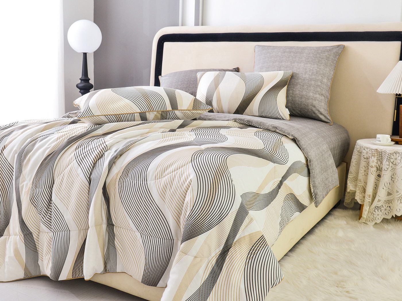 Особенность: двусторонняя модель, наволочки и одеяла декорированы кантом.