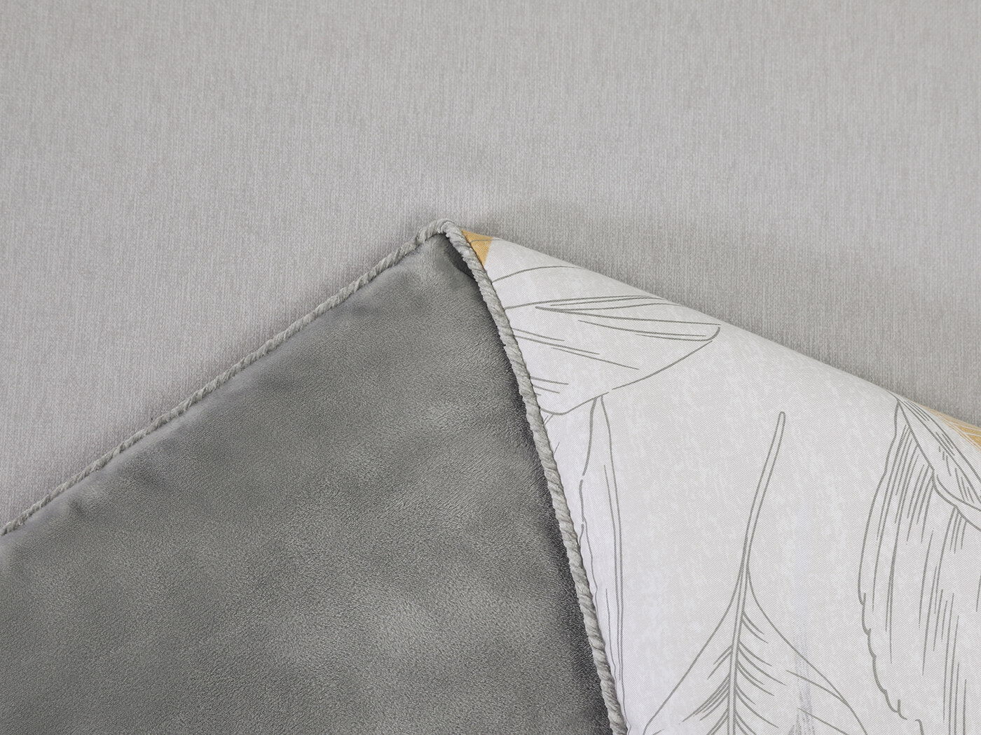 Обратная сторона одеяла – принтованный сатин натуральный хлопковый материал. На ощупь нежная и шелковистая, при этом комфортная и прочная ткань.