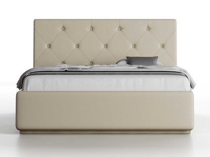 Кровать укомплектована IQ с подъемным механизмом и ящиком для белья без дна (дополнительная платная опция - дно к ящику IQ из HDF (ХДФ). Каркас кровати на цоколе, декоративный чехол на цоколе съёмный. Глубина ящика для белья - 30 см, без ограничения нагрузки на ящик.