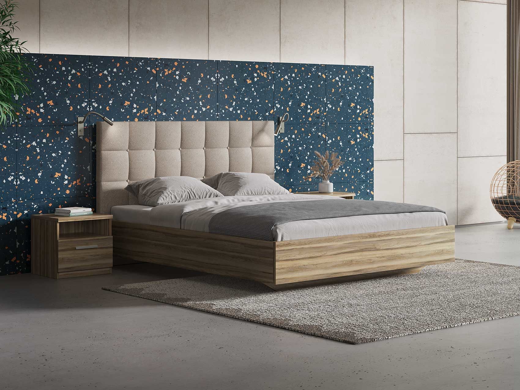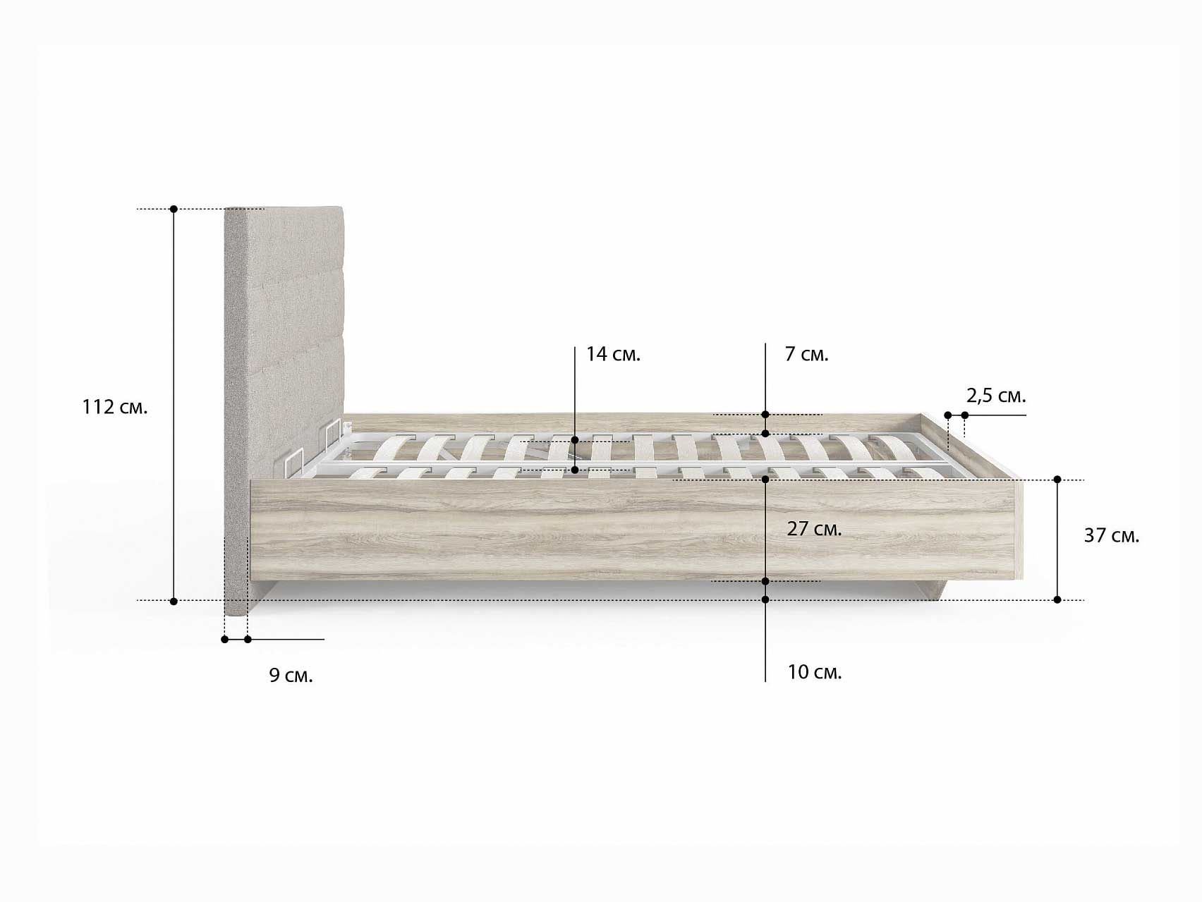 ЛДСП. Безопасный и экологичный ЛДСП стандарта Е1 содержания формальдегида. Увеличенная толщина плиты 25 мм делает кровать надежной. Современный и актуальный цвет.