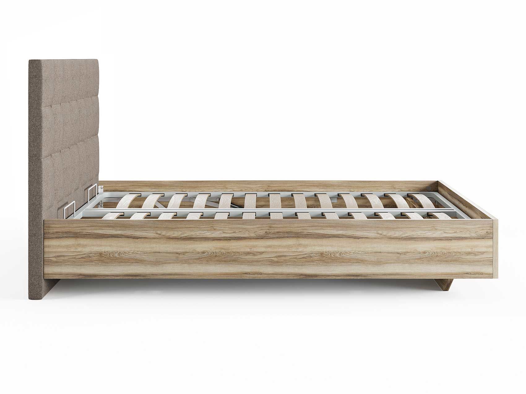 Кровать комплектуется металлическим основанием (без опор), которое имеет 13 рядов встроенных березовых ламелий на каждое спальное место, обеспечивая равномерное распределение нагрузки.