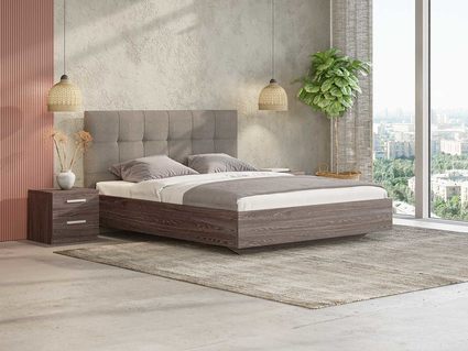 ЛДСП. Безопасный и экологичный ЛДСП стандарта Е1 содержания формальдегида. Увеличенная толщина плиты 25 мм делает кровать надежной. Современный и актуальный цвет.