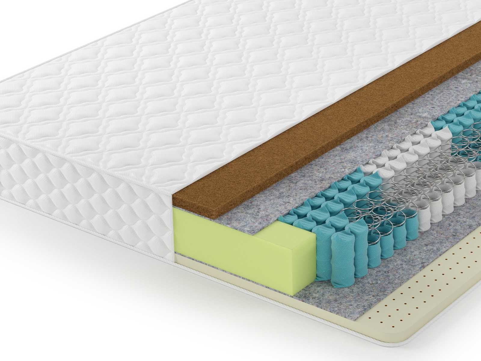 Одна сторона матраса высокой жесткости, за счет использования латексированной кокосовой койры. Это очень прочный материал, имеющий хороший влагообмен и не впитывает запахи. Обладает антибактериальными и гипоаллергенными свойствами.