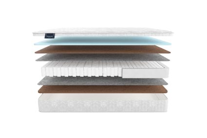 Первая сторона матраса обладает средней жесткостью, которую обеспечивает плотная и эластичная универсальная пена natural foam (аналог натурального латекса) в комбинации с 1 см латексированного кокоса. Матрас ощущается плотным и устойчивым. Вторая сторона ощущается как умеренно жесткая благодаря 2 см латексированного кокоса.