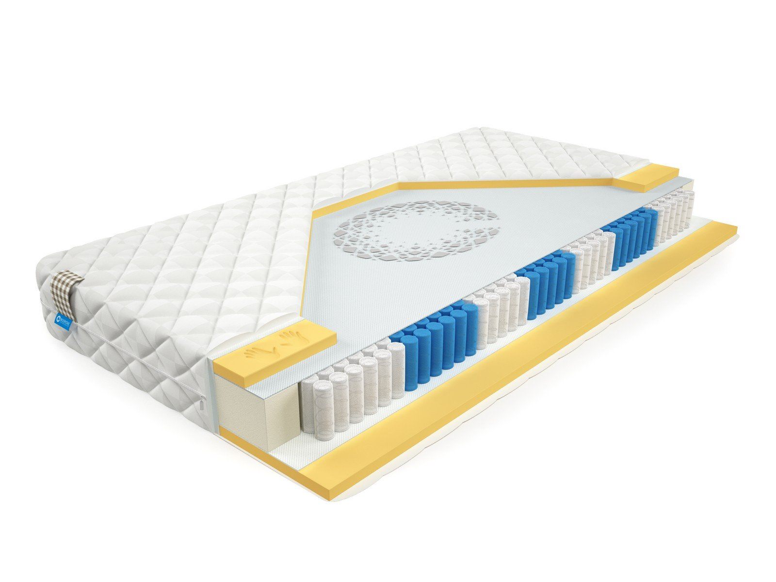 Матрас BioCrystal Record XL - матрас низкой степени жесткости с эффектом памяти. Матрас c ортопедическим эффектом на основе семи-зонного пружинного долговечного блока независимых пружин SIlverSpringPocket 7 zone. Данный блок насчитывает 1000 металлических пружин на одно спальное место, это оптимальное количество пружин для бюджетного матраса. 7 зональный пружинный блок SSP 1000 значительно прочнее обычного блока независимых пружин, и имеет большее количество витков, что, в свою очередь, лучше сказывается на упругости матраса и качестве сна. Матрас насчитывает семь зон жесткости и правильно повторяет изгибы позвоночника во время сна или отдыха. С каждой стороны матраса расположены по 2 сантиметра memory foam, что делает матрас мягким и обладает эффектом памяти.
