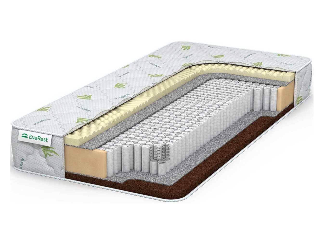 EveRest Кокос латекс 7 зон S1000 – матрас с двумя разно-жёсткими поверхностями. Одна сторона здесь показывает высокие значения, а вторая – низкие. Важное преимущество для модели – 100% натуральные наполнители с качественным составом.