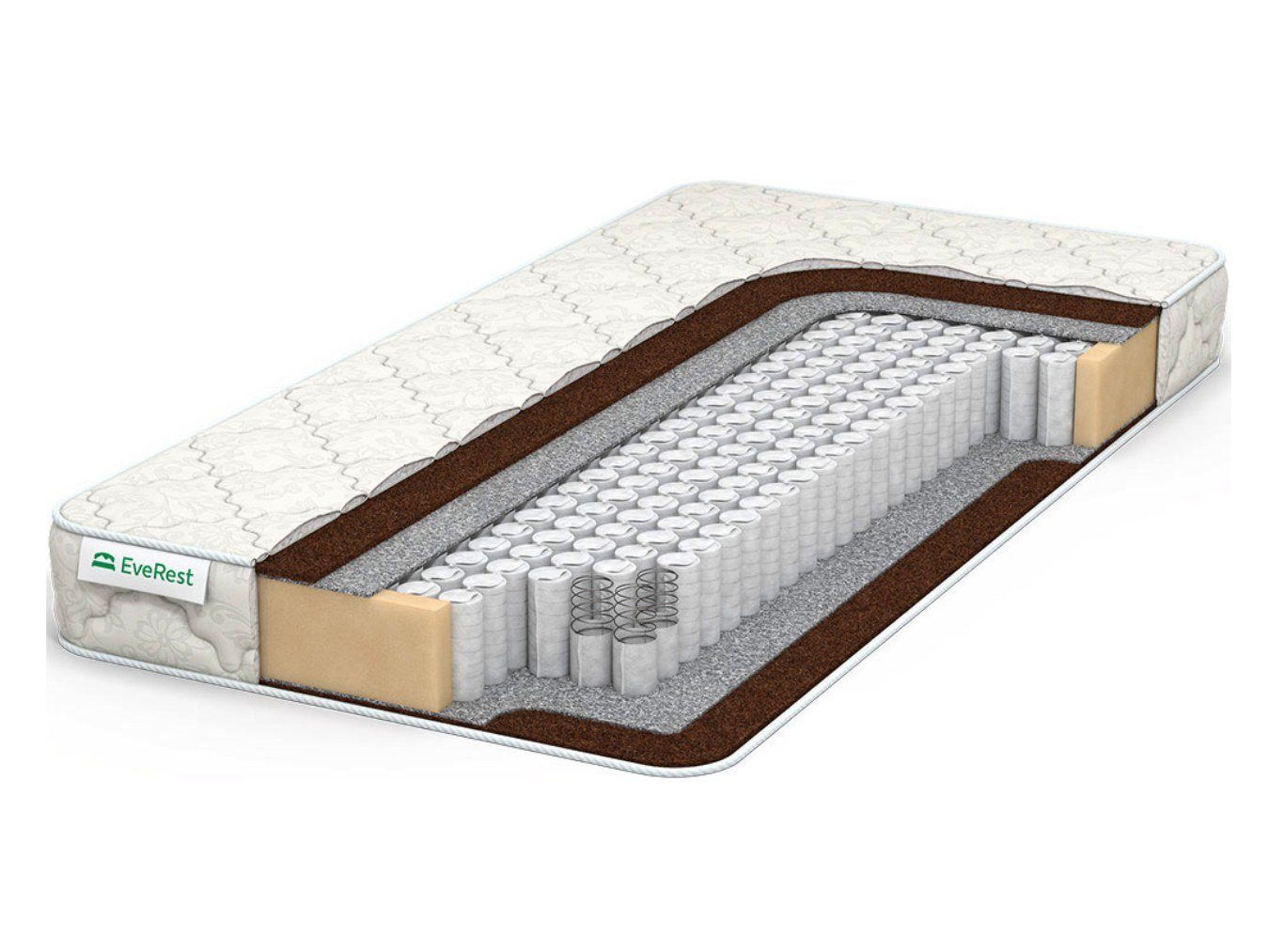 Двусторонний матрас EveRest Хард кокос 1 ТФК особенно понравится тем, кто ценит жёсткие спальные места. Модель характеризуется производителем как с высоким уровнем плотности и способной переносить давление до 110 кг на спальное место.