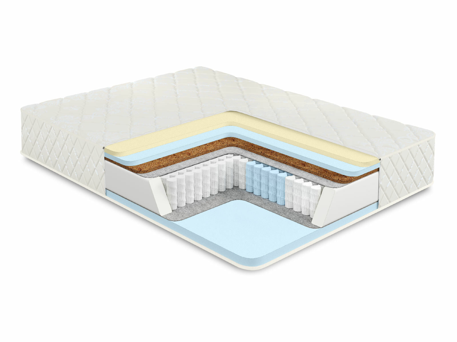 Кокосовое волокно с натуральным латексом придает жесткость, экологически чистый материал, который прекрасно вентилируется.