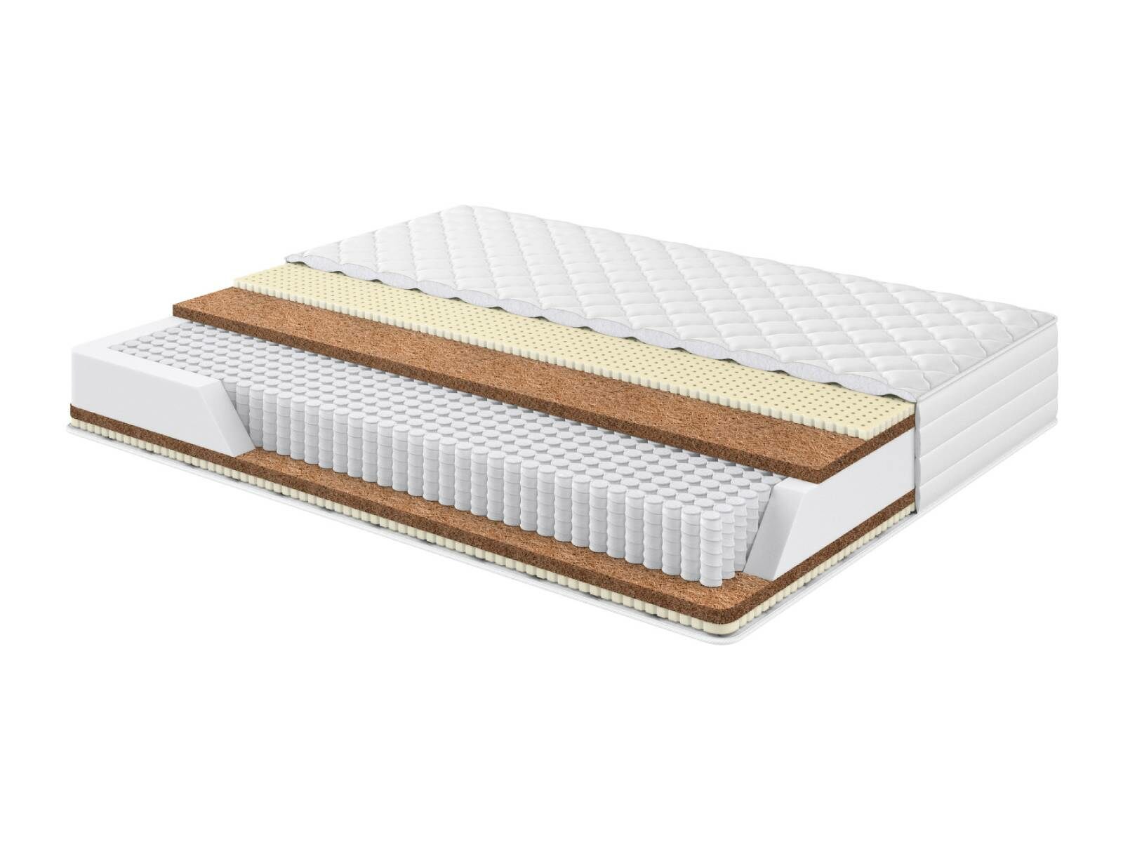 Кокосовая койра латексированная. Экологически чистый, долговечный природный материал, получаемый из межплодника ореха кокосовой пальмы, произрастающей в тропических районах Юго-Восточной Азии. Будучи натуральным материалом, койра, тем не менее, не вызывает аллергических реакций, и наоборот, выросшее под солнцем тропиков, кокосовое волокно впитало в себя огромный запас энергии, которая создает на много лет мощное благотворное биополе. В качестве наполнителя для матрасов кокосовая койра обеспечивает оптимальную упругость и долговечность матраса. Для устранения ломкости и увеличения срока эксплуатации, кокосовое волокно пропитывают латексом. На выходе получается монолитная плита: прочная и долговечная. Латексная пропитка позволяет выдерживать большие нагрузки и препятствует деформации и расслаиванию наполнителя.