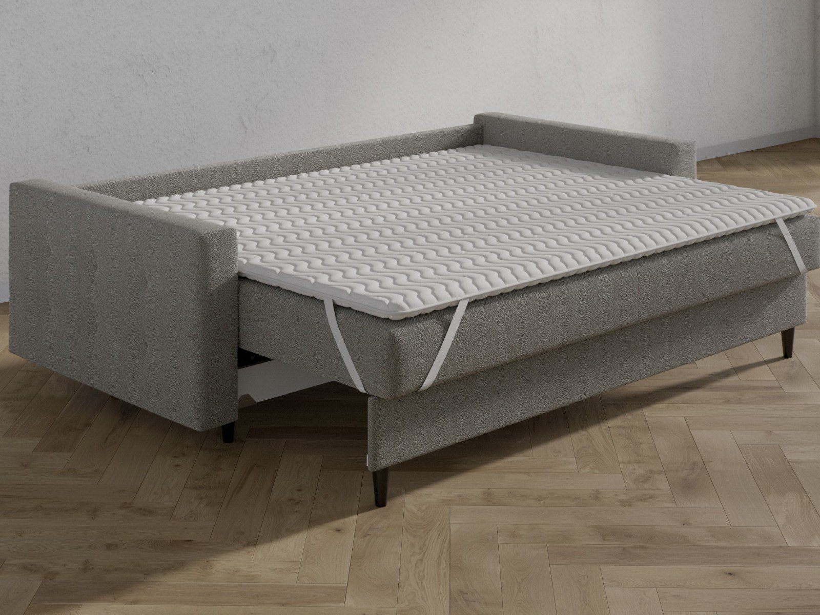 Топпер состоит из кокосовой койры. Предназначен для придания жёсткости слишком мягким матрасам и диванам, а также для устранения небольших прогибов и неровностей. Крепление осуществляется с помощью резинок по четырём углам. Чехол выполнен из натурального хлопка.