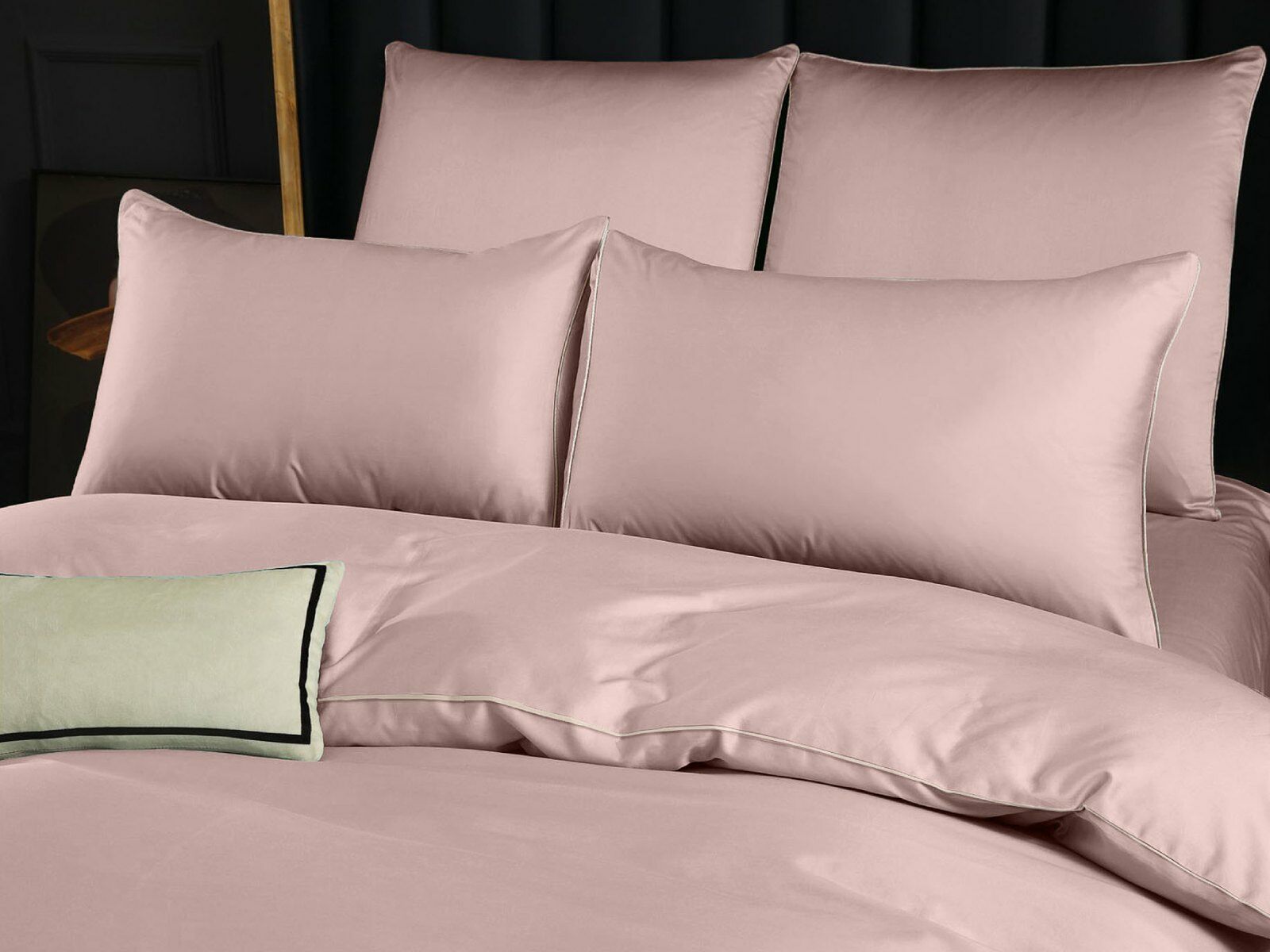 Пододеяльник украшен декоративным кантом по периметру и имеет удобную молнию по всей ширине, что значительно упрощает процесс его замены. Классический, сдержанный цвет кофейного напитка латте выглядит одновременно строго, элегантно и очень уютно.