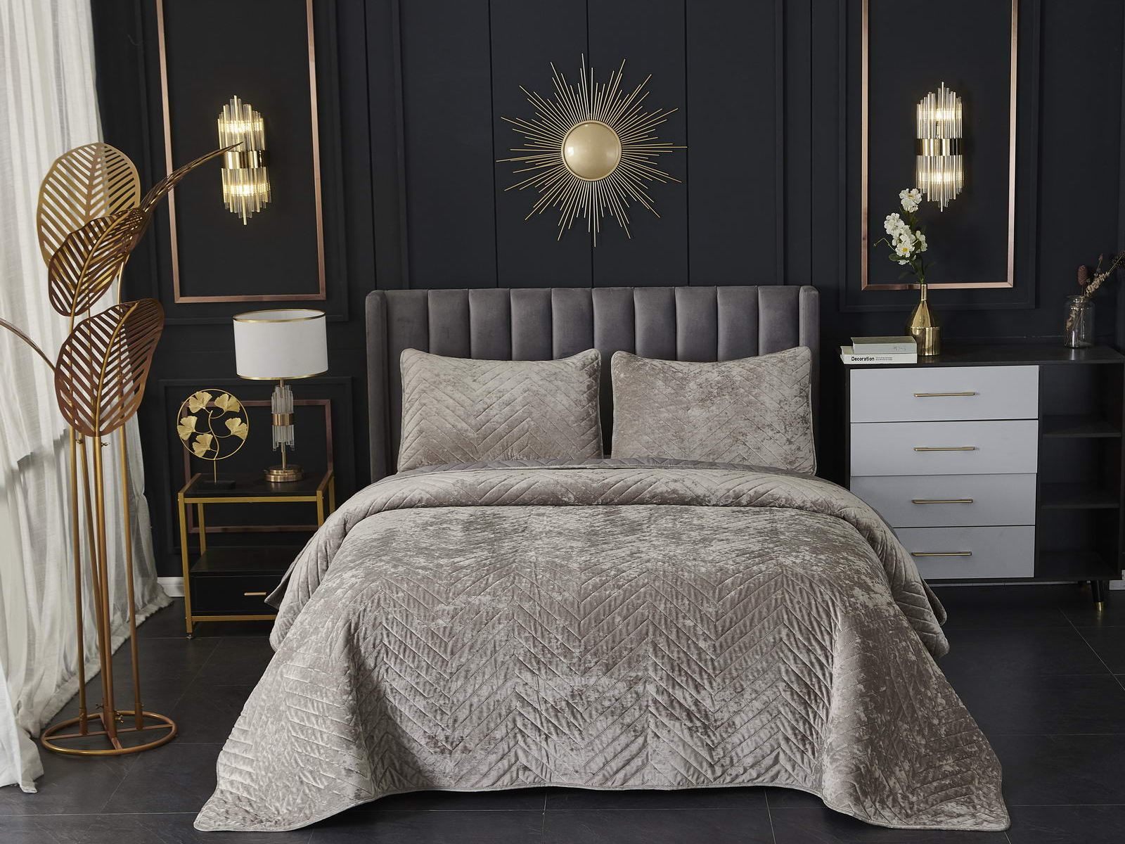 Покрывала Фернанд выглядят как будто сошли с картин, изображающих королевские покои. Бархатную ткань начали изготавливать еще в Средние века, её использовали в оформлении дворцов и изготавливали плащи и головные уборы для знати. Теперь и вы можете прикоснуться к этой роскоши! Бархатная текстура приятная на ощупь, а из-за особого плетения ткани, игра света на ней выглядит благородно. Поэтому покрывало Фернанд создаст необычайно уютную атмосферу в вашей спальне. Цветовая гамма разнообразна и включает восемь благородных оттенков: капучино, бежевый, изумруд, горчичный, терракотовый, пепельная роза, серый, стоун. За покрывалом Фернанд легко ухаживать: стирка при температуре 30 градусов, вручную или в машинке. Важно хорошо просушить изделие! При правильном уходе вещь прослужит долгие годы не потеряв форму и цвет.