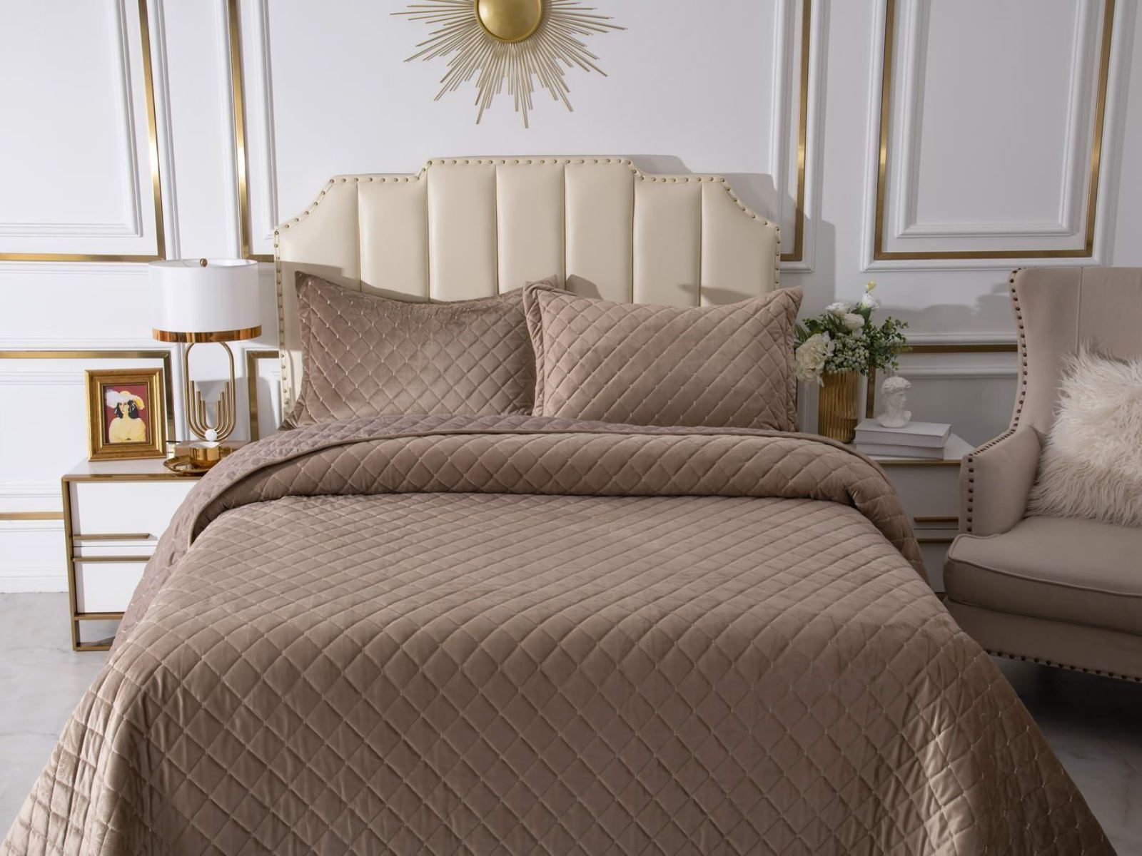 Дизайнеры Sofi De Marko создали серию домашнего текстиля Натаниэль, создающую ощущение настоящей королевской роскоши: безупречность кроя сочетается с элегантностью расцветок и мягкостью велюра. Для изготовления текстиля используются только натуральные материалы высокого качества. Ваш дом станет настоящей зоной комфорта, а друзья и близкие оценят вашу любовь и заботу.