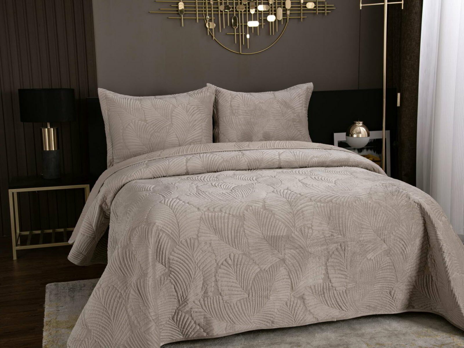 На создание велюрового покрывала Ноэль наших дизайнеров вдохновила ночь в середине лета, когда на раскаленную от жары землю спускается долгожданная прохлада. Роскошная вышивка в виде пальмовых листьев будет напоминать о тени, которую отбрасывают деревья.