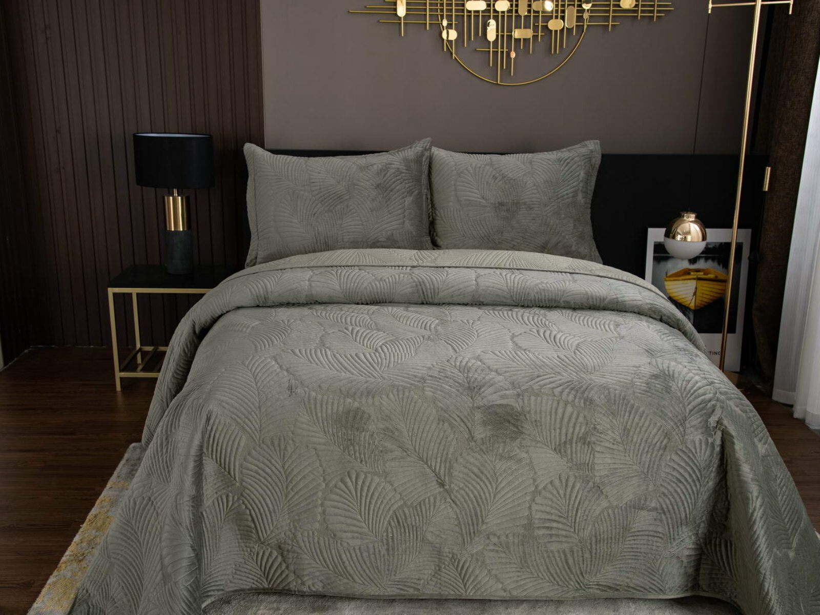 На создание велюрового покрывала Ноэль наших дизайнеров вдохновила ночь в середине лета, когда на раскаленную от жары землю спускается долгожданная прохлада. Роскошная вышивка в виде пальмовых листьев будет напоминать о тени, которую отбрасывают деревья.