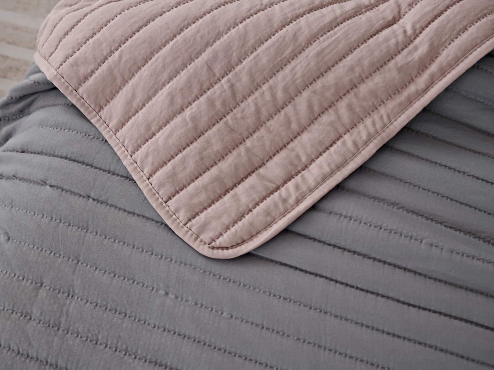 Покрывала двусторонние, оборотная сторона декорирована окантовкой, они выглядят сдержанными и универсальными. Изделия выполнены в восьми оттенках, подойдут для различных интерьеров, объединяет коллекцию потрясающее качество и приятный внешний вид.