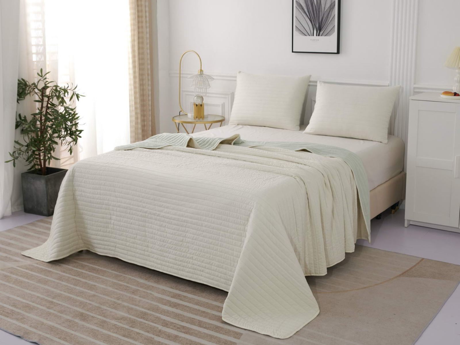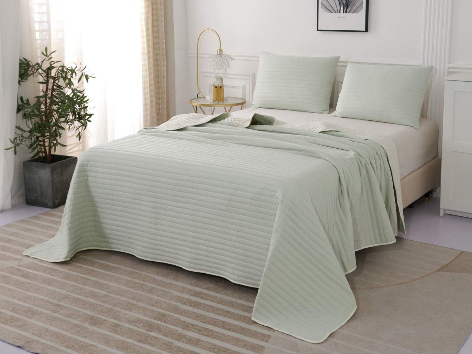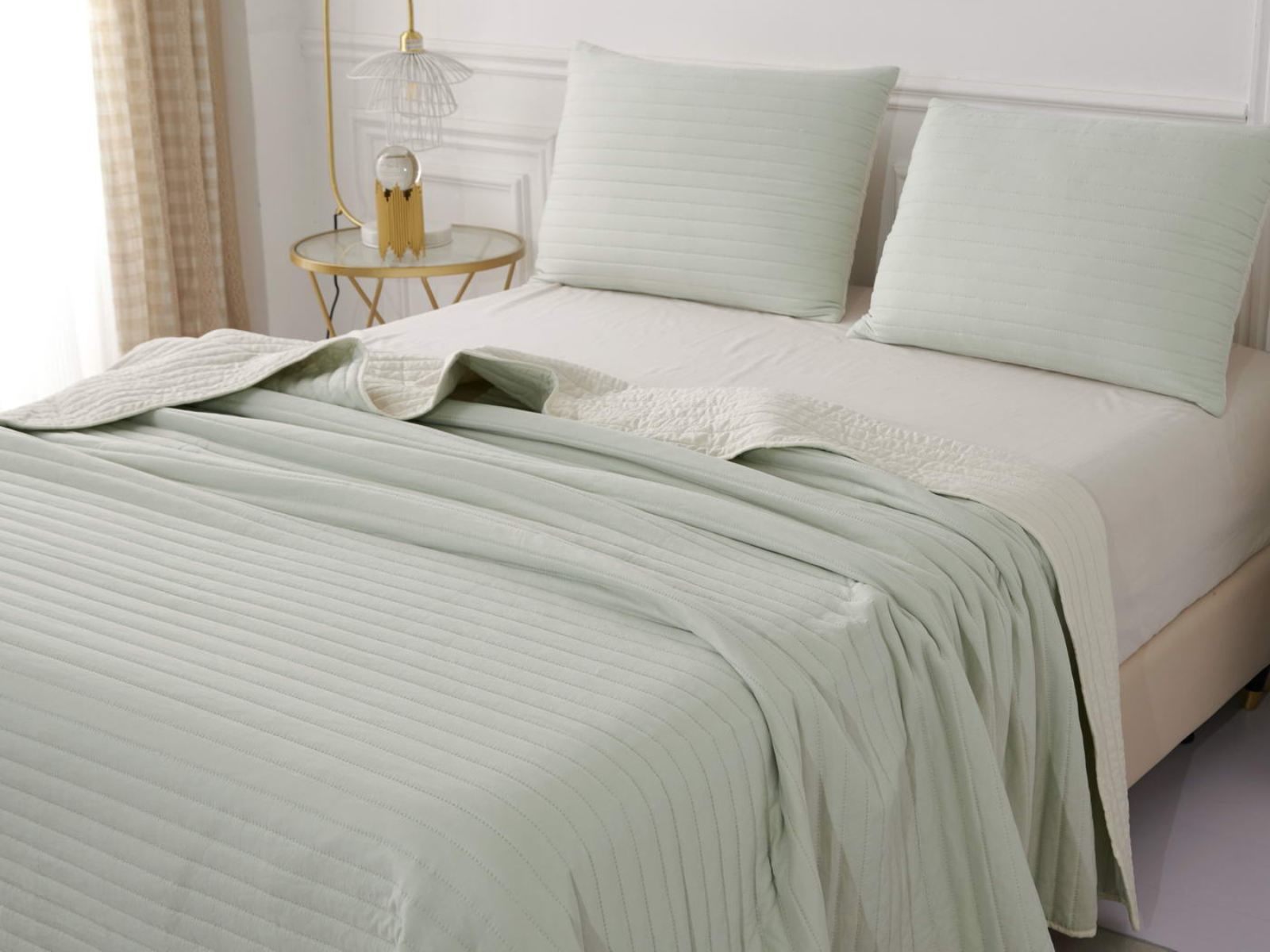 Двусторонние стеганные покрывала Самуэль выполнены из вискозы и хлопка, они легкие и прочные. В комплект входят покрывало и одна либо две наволочки (50х70 см) из аналогичного материала в зависимости от размера, вы можете использовать покрывало по назначению, либо в качестве постельного белья. В любом случае, вы будете в восторге от этого комплекта!