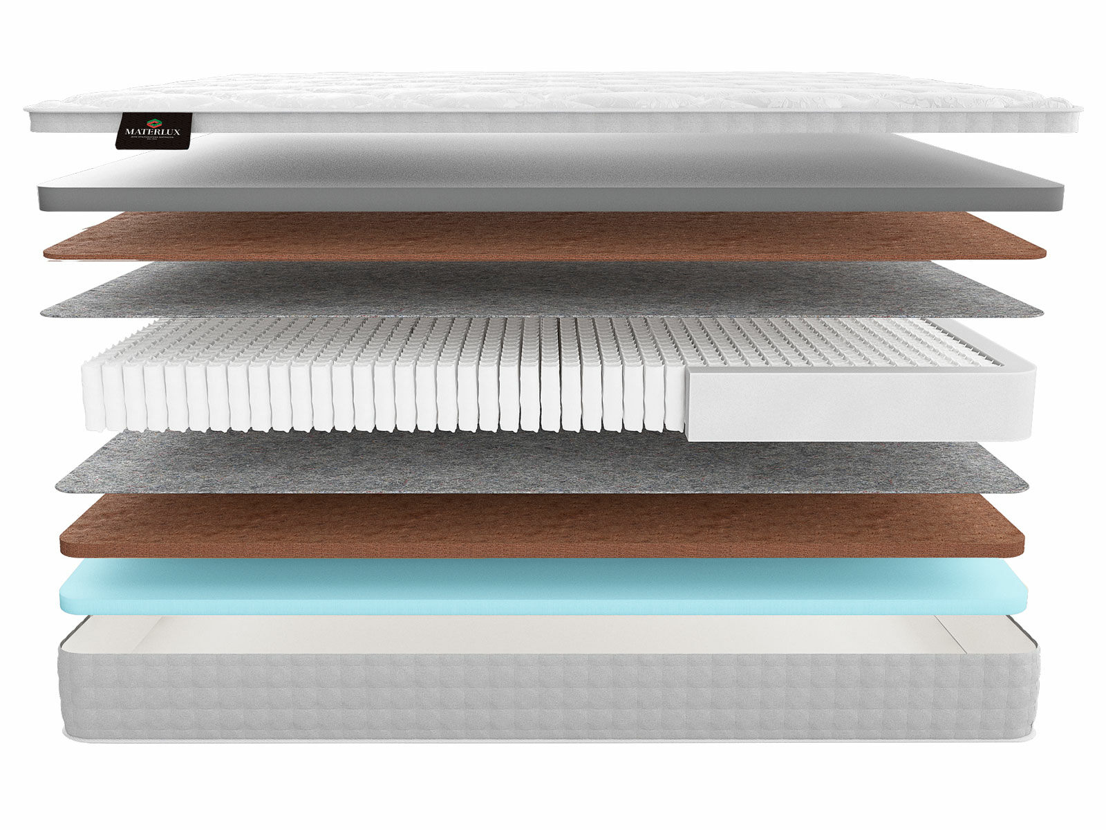 Термофиксированный фетр (500 гр./кв. м; 0,5 см): защитный слой, обеспечивающий ровную поверхность и продлевающий срок службы матраса.
