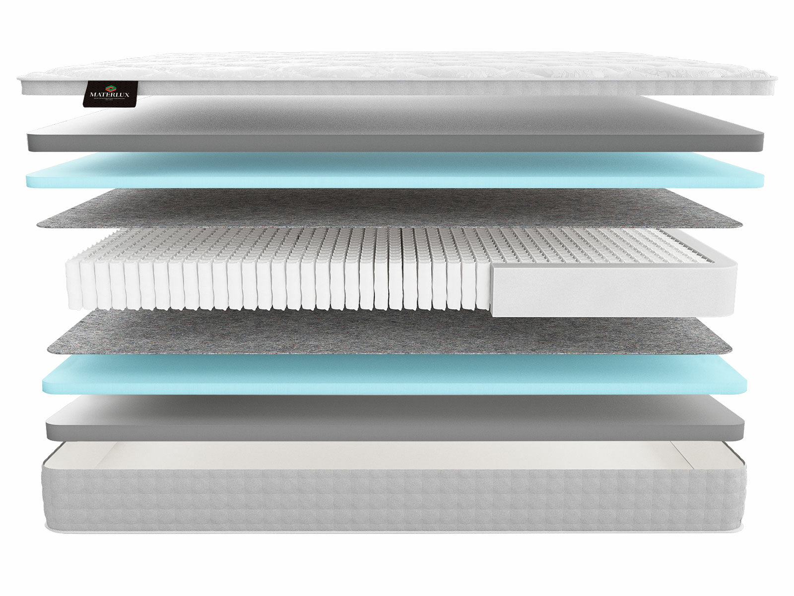 Термофиксированный фетр (500 гр./кв. м; 0,5 см): этот натуральный материал служит в качестве надежной изоляции между пружинами и внешними слоями матраса, обеспечивая дополнительную прочность и комфорт.