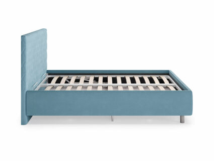 Прямую форму изголовья декорирует мягкий чехол. Чехол изголовья простеган ромбами среднего размера, что добавляет модели объем и подчеркивает выразительность. Кровать Stella лаконична, нейтральна, не берет на себя много внимания поэтому органично впишется в большинство современных интерьеров. Увеличенный просвет от пола позволяет облегчить уборку под кроватью, в том числе роботом–пылесосом. Царги кровати выполняются по технологии съемного чехла.